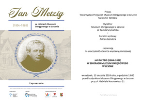 Serdecznie zapraszamy na uroczyste otwarcie nowej wystawy planszowej dotyczącej postaci i historii Jana Metziga.