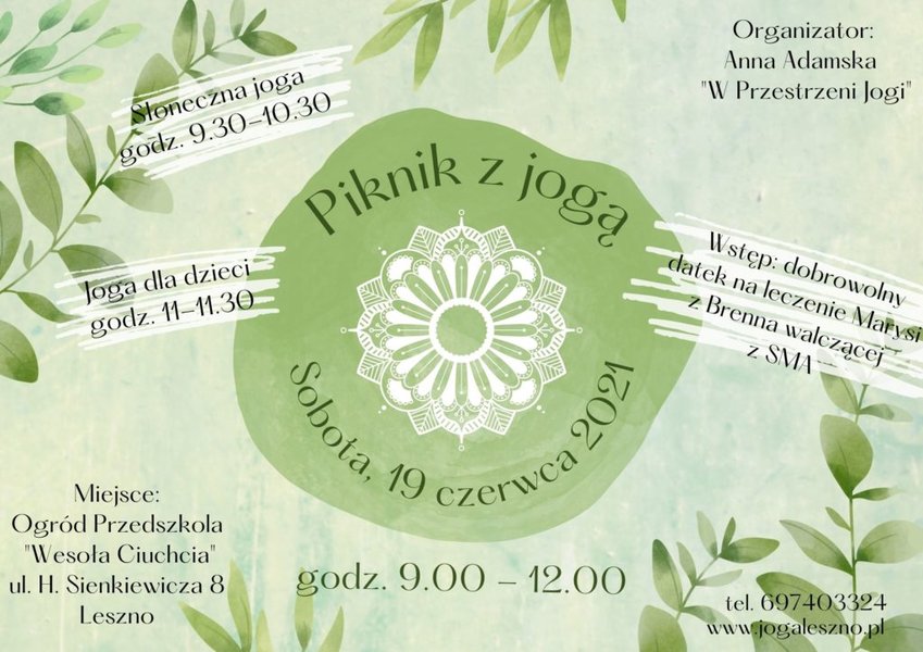 - Piknik z okazji Międzynarodowego Dnia Jogi – charytatywnie dla Marysi