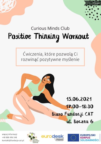 Klub Ciekawskich Głów i Duna zaprasza na kolejne spotkanie, na którym wypróbowane zostaną metody i praktyki rozwijające pozytywne myślenie. Poznacie kilka sztuczek mózgu i sposobów na zmniejszenie stresu i nadmiernego myślenia. Przyjdźcie na trening pozytywnego myślenia, a nie pożałujecie!