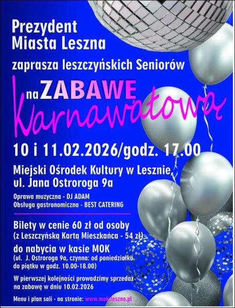 Więcej informacji znajdziesz na:https://ngo.leszno.pl/Zabawa_Karnawalowa_dla_Seniorow.html
